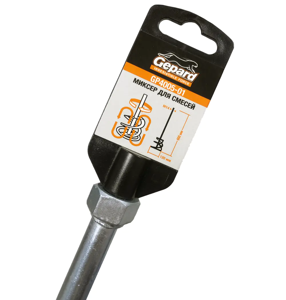 Миксер для смесей 120 х 600 мм (GP4005-01) подходит для всех марок миксер-дрелей с посадочным отверстием М14. Предназначен для перемешивания тяжелых и вязких растворов и смесей (бетон, штукатурка, стяжка и т.д.). Рекомендуется использовать на малых оборотах. Использование насадки позволяет существенно сократить время замешивания и повысить его качество. Общая длина 600 мм. Диаметр корзины 120 мм.
