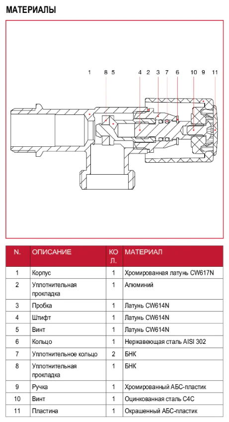 - Материал: латунь.
