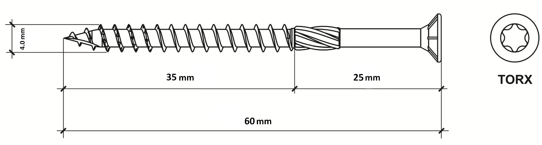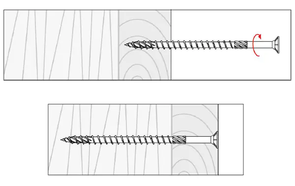 - Саморез обладает потайной головкой с TX шлицом (звездочкой). Потайная головка позволяет вкрутить саморез в уровень с поверхностью детали, шлиц TX обеспечивает оптимальную передачу крутящего момента.