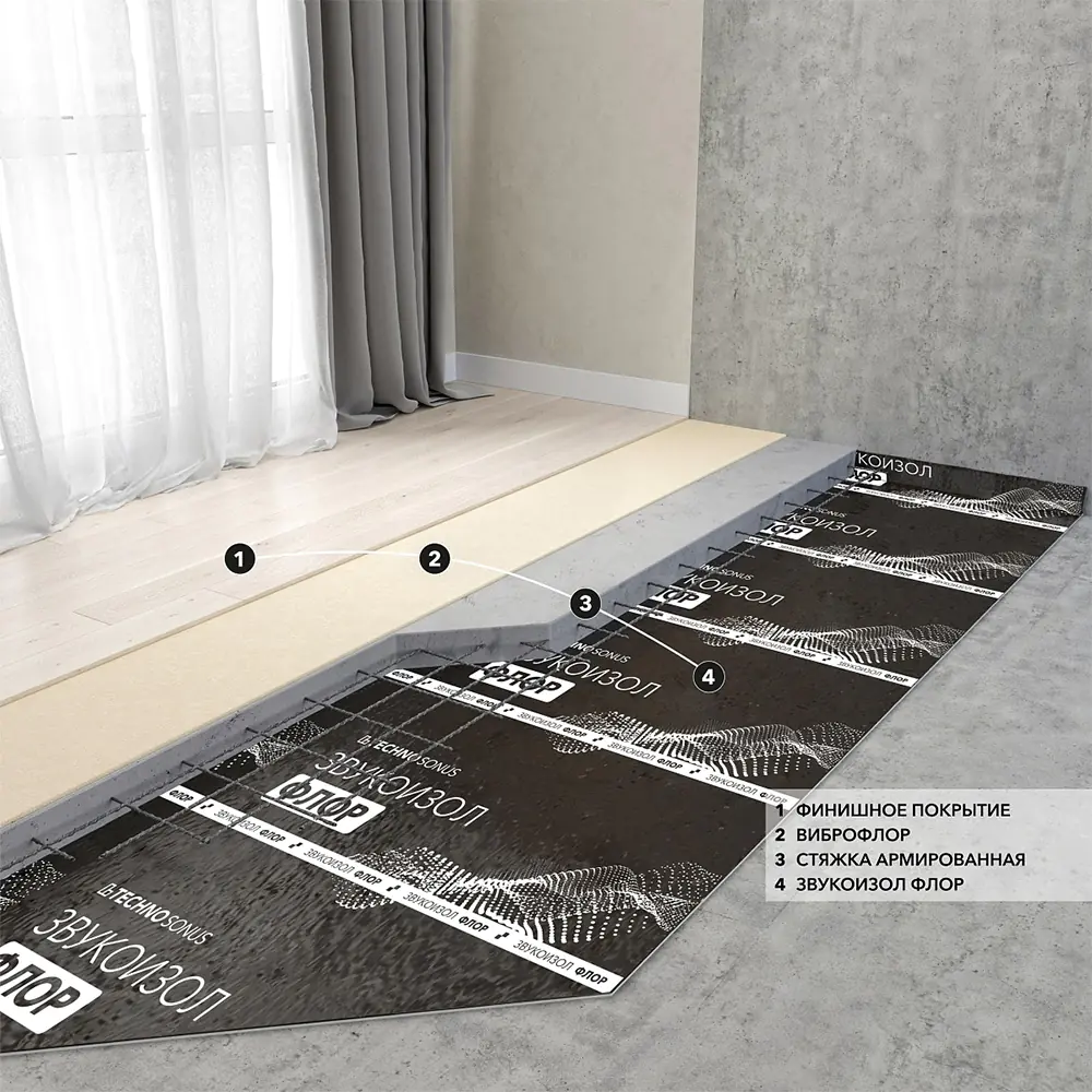 Применяется в качестве звукоизолирующей прокладки в конструкциях "плавающих" полов под цементнопесчаную стяжку. При устройстве гидроизоляции герметизацию стыков рекомендуется делать внахлест при помощи нагрева строительным феном. Рабочая температура материала до -5ºC. Минимально допустимая температура для укладки материала +15ºC.