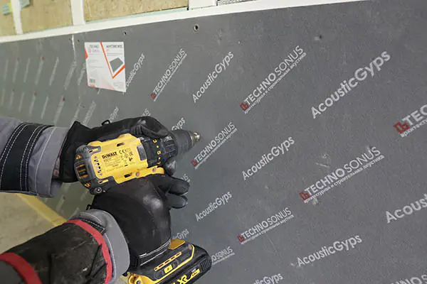Монтаж панелей АкустикГипс М1 в каркасных конструкциях для перегородок, подвесных потолков, облицовки стен выполняется на металлический или деревянный каркас. Панели крепятся посредством саморезов.