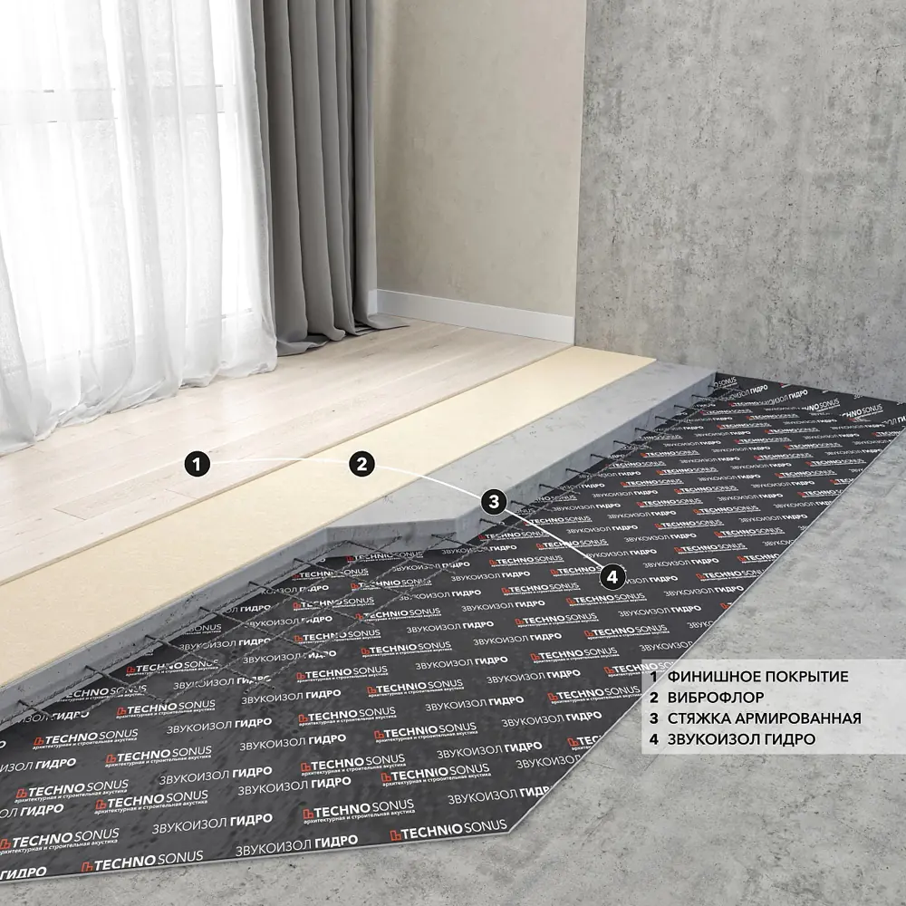 Одновременно выполняет функции гидро- и звукоизоляции.